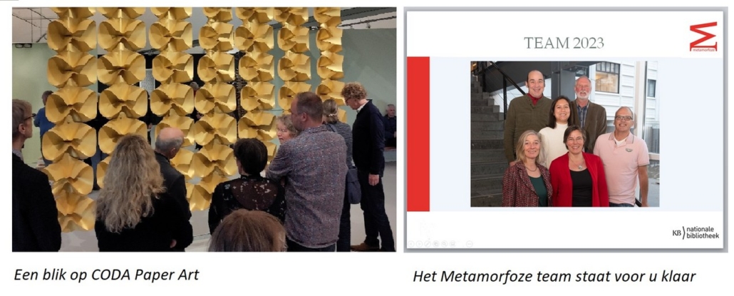 Na een smakelijke lunch en een rondleiding over CODA Paper Art trapt Alexandra Daniëls het middagprogramma af. In haar bijdrage Lachen met het papieren erfgoed belicht zij humorvol de rol en werkwijze van Metamorfoze, het nationale programma van de KB voor het behoud van en duurzame toegang tot het papieren erfgoed van Nederland. Bij Metamorfoze kunnen voorstellen voor onderzoek en conservering van collecties als die van Loeber worden ingediend. Ze waarschuwt ook voor fouten in de aanpak van behoud en illustreert dat met een item uit het NOS-journaal waarin een zorgvuldig verzegeld pakket uit Haastrecht na honderd jaar werd geopend en – tot schrik van deskundigen – de scherpe schaar waarmee dit werd gedaan in beeld kwam.